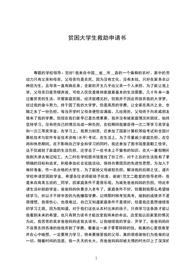 爸爸妈妈一边挣钱给我们姐弟两治病,一边还要供我们读书。哥哥现在就读于贵州师范学院,每年的学费也是笔不小的数目,现在加上我又考上了贵州财经大学,报名费如今还没有着落,父母也为此操碎了心。所以我希望领导能考虑我们家的实际困难,给予我们一定的帮助,帮助我们一家度过困难时期。我相信自己的明天,我也将更加勤奋努力,以此答谢所有给予我支持和鼓励的领导和亲朋好友。大学,我人生中新的起点。今后的四年大学生活中,我会刻苦学习,奋力拼搏,争取做一名德才兼备的优秀学生,将来成为一名国家的有用人才,回报国家、学校和父母。