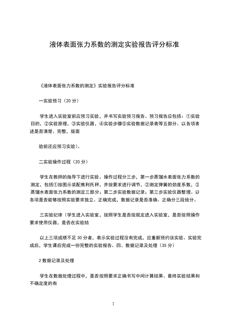 《液体表面张力系数的测定》实验报告评分标准