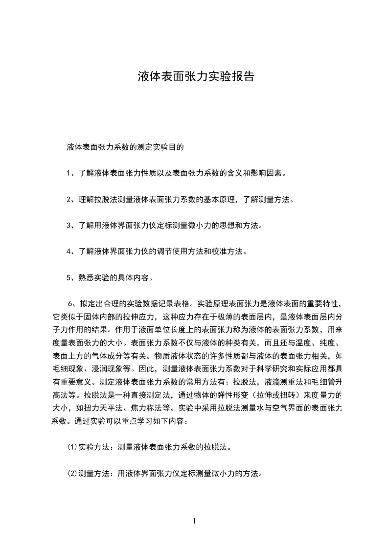 学生进入实验室前应预习实验,并书写实验预习报告。预习报告应包括:①实验目的,②实验原理,③实验仪器,④实验步骤⑤实验数据记录表等五部分。以各项表述是否清楚、完整,版面