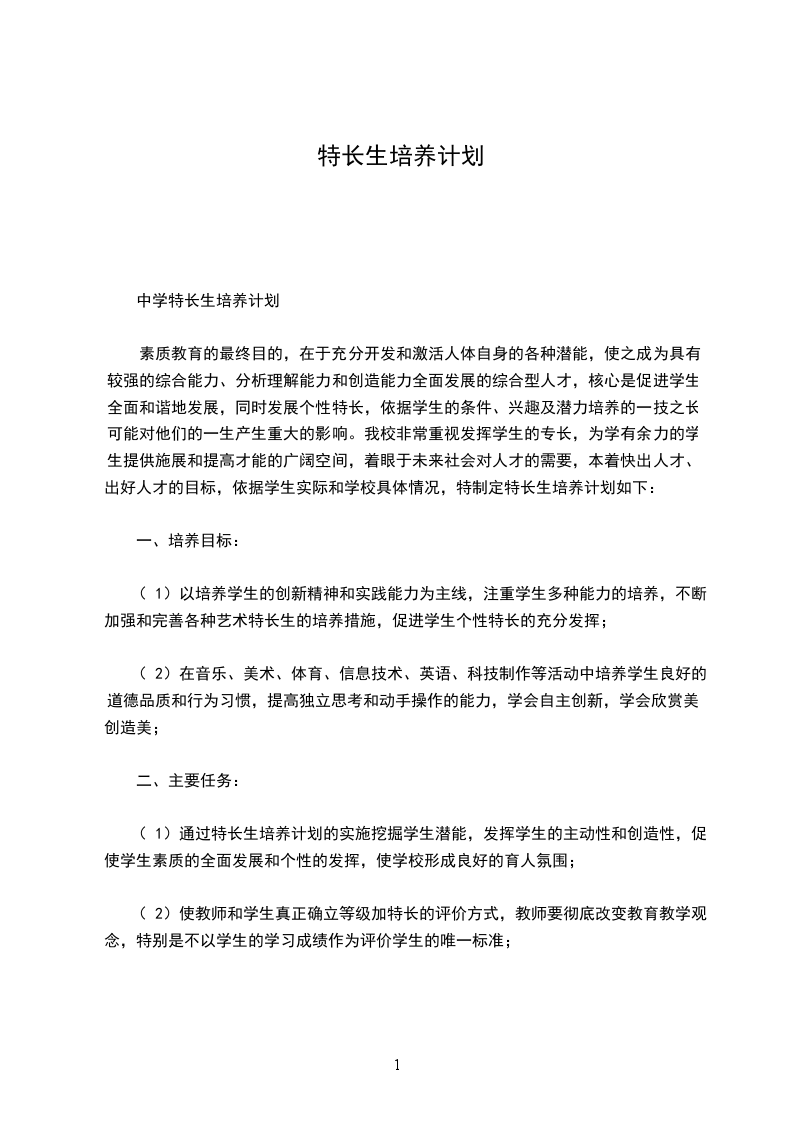 中学特长生培养计划