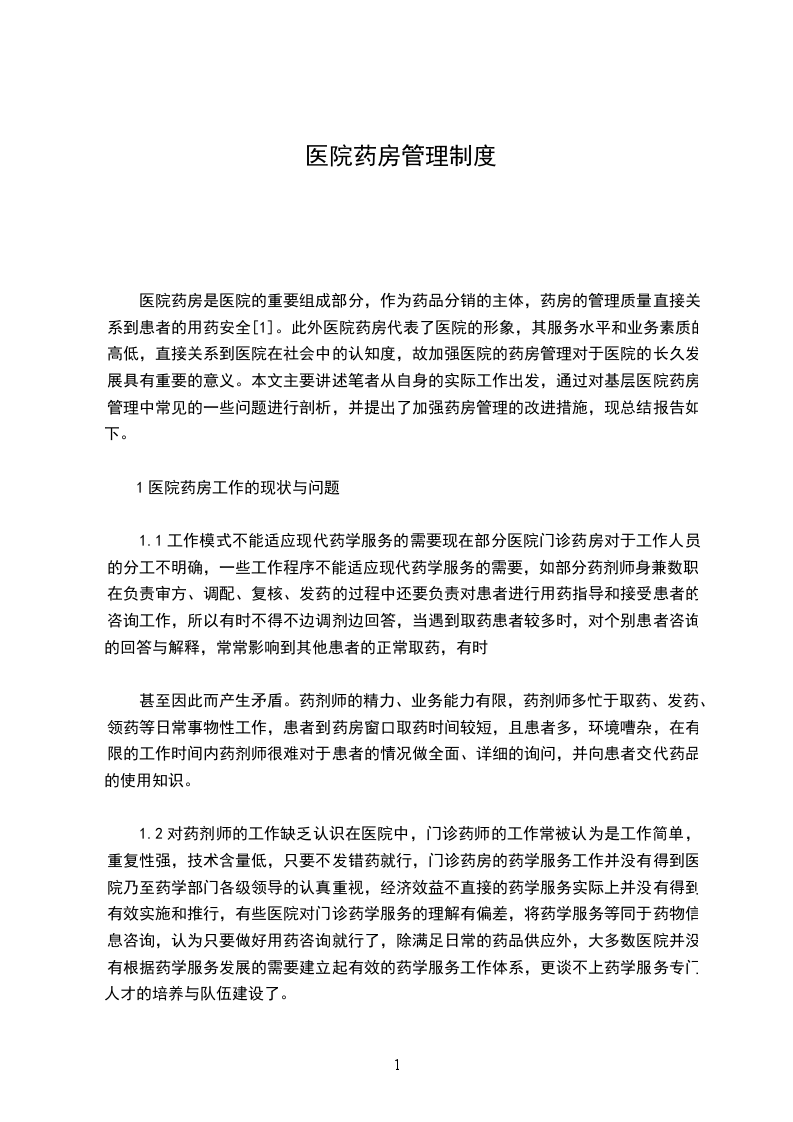 1医院药房工作的现状与问题