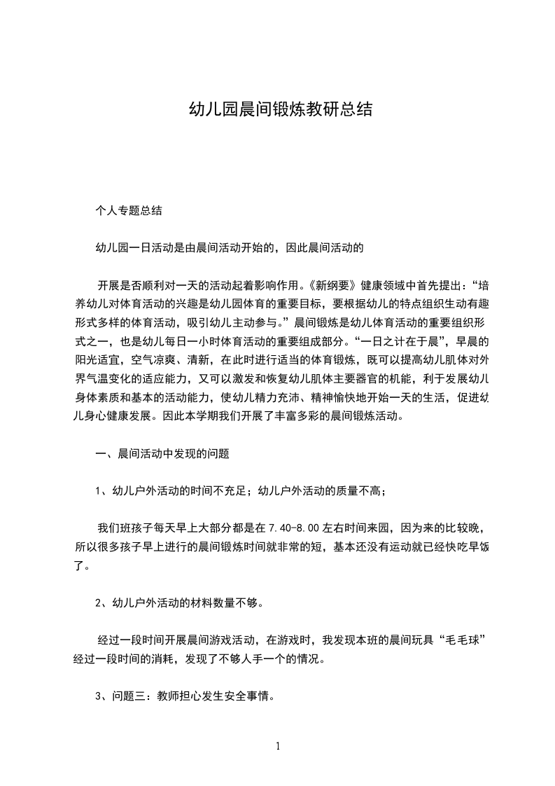 一、晨间活动中发现的问题
