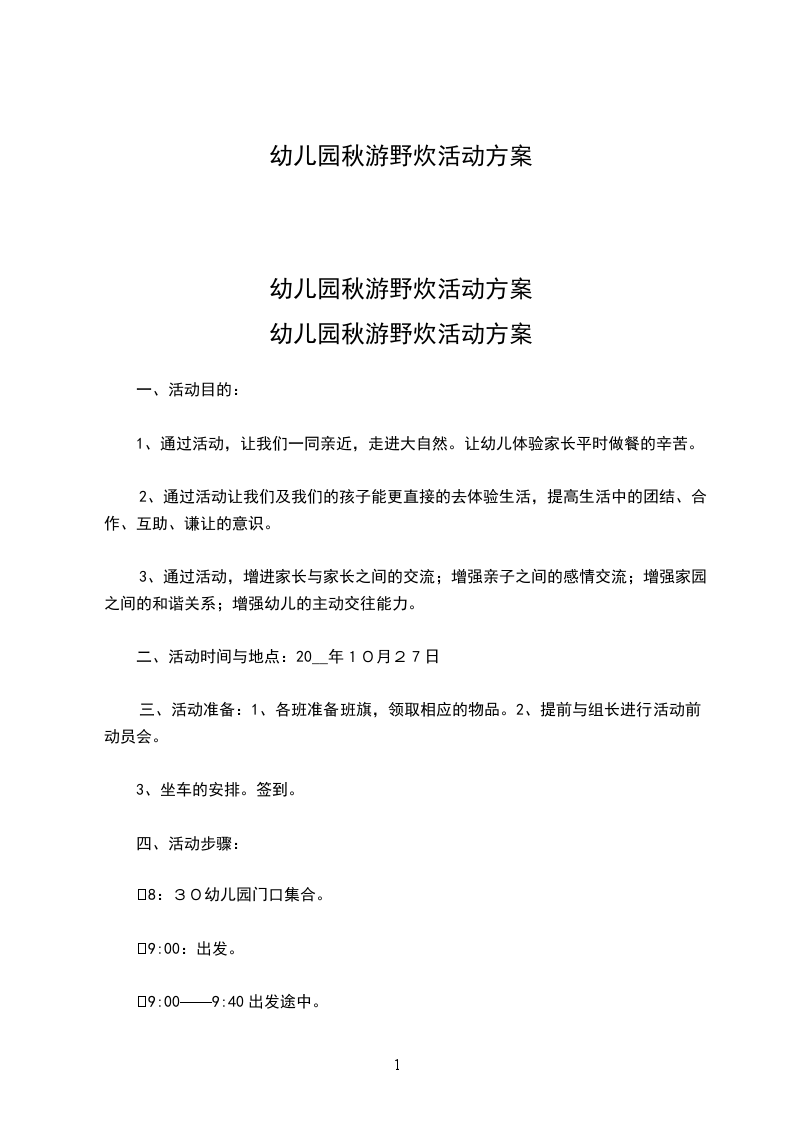 幼儿园秋游野炊活动方案