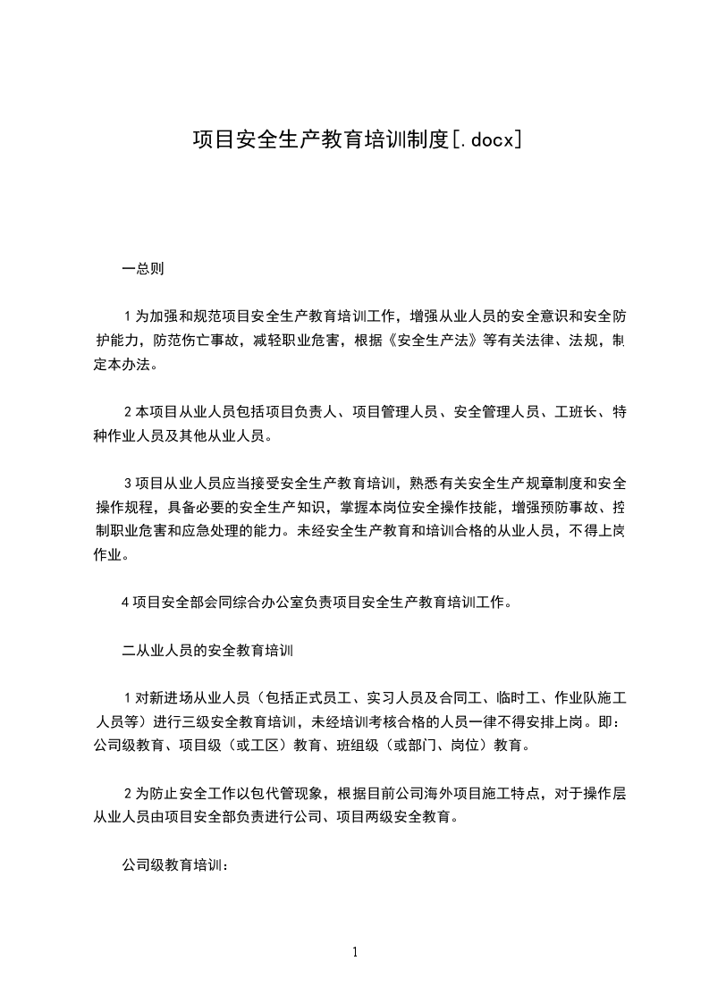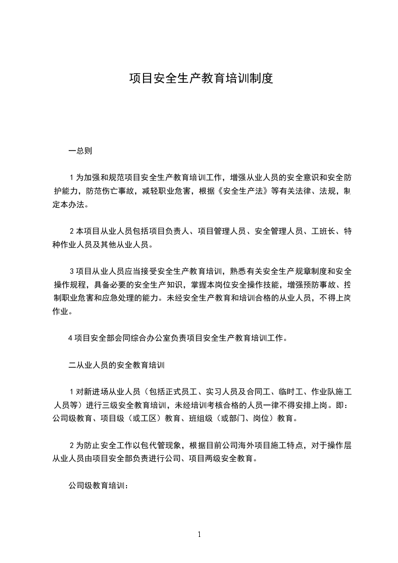 项目部人员培训,由分公司集中组织办理在每年年初进行。