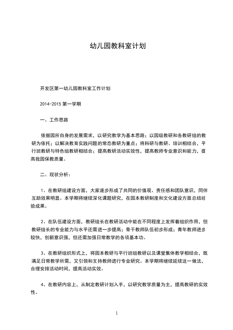 开发区第一幼儿园教科室工作计划
