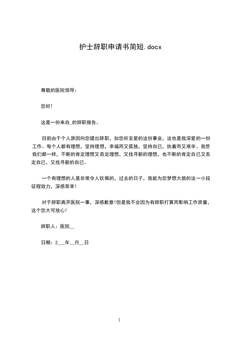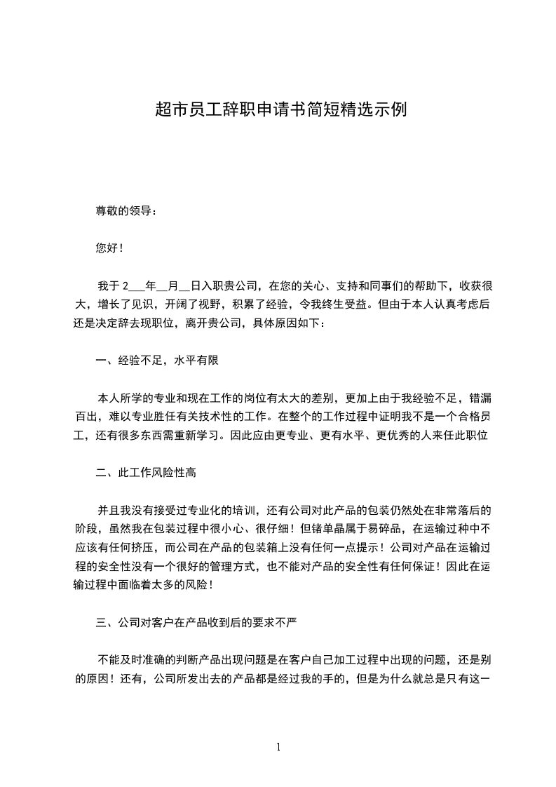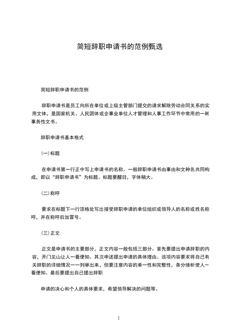 简短辞职申请书的范例