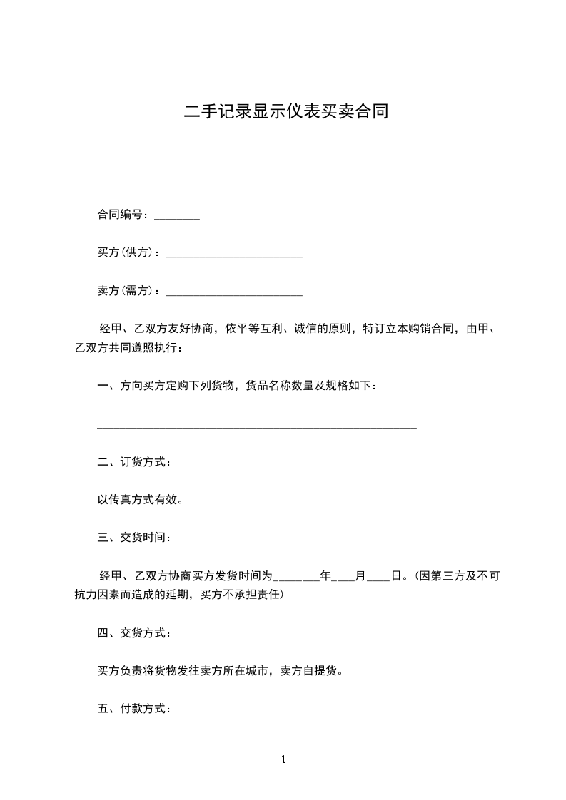 一、方向买方定购下列货物,货品名称数量及规格如下: