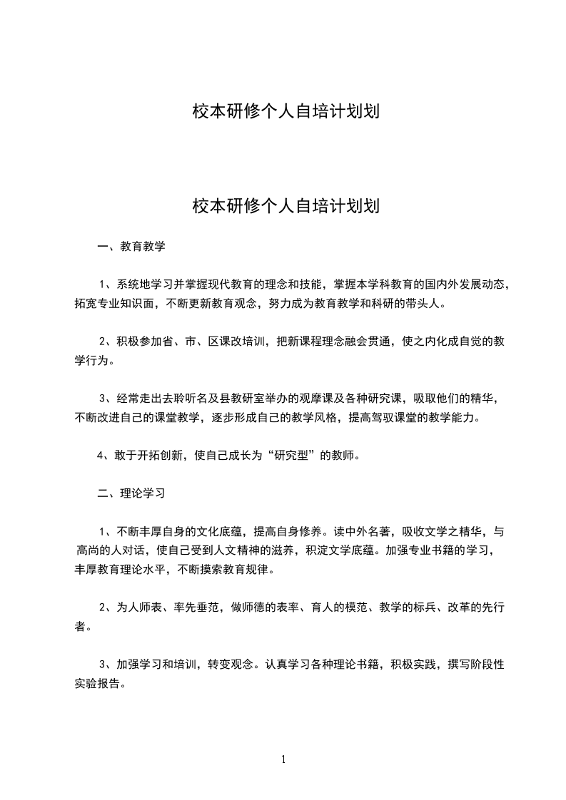 校本研修个人自培计划划