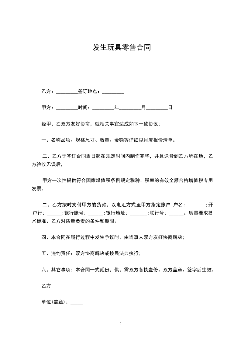生肖玩具销售合同