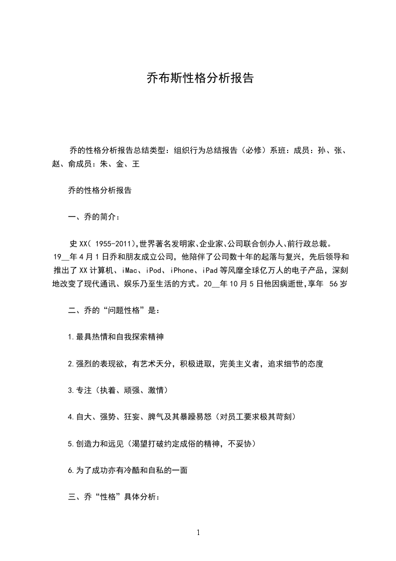 乔的性格分析报告总结类型:组织行为总结报告(必修)系班:成员:孙、张、赵、俞成员:朱、金、王