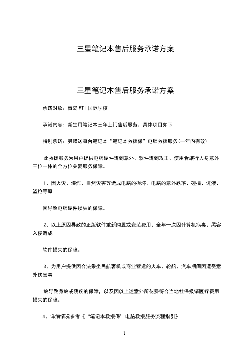 三星笔记本售后服务承诺方案