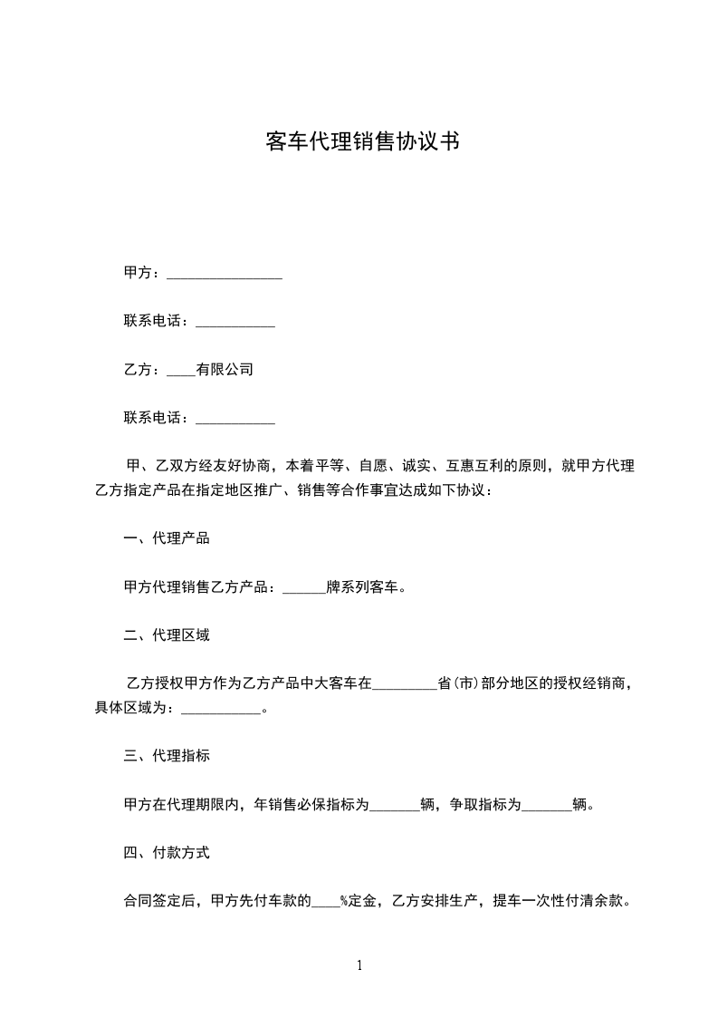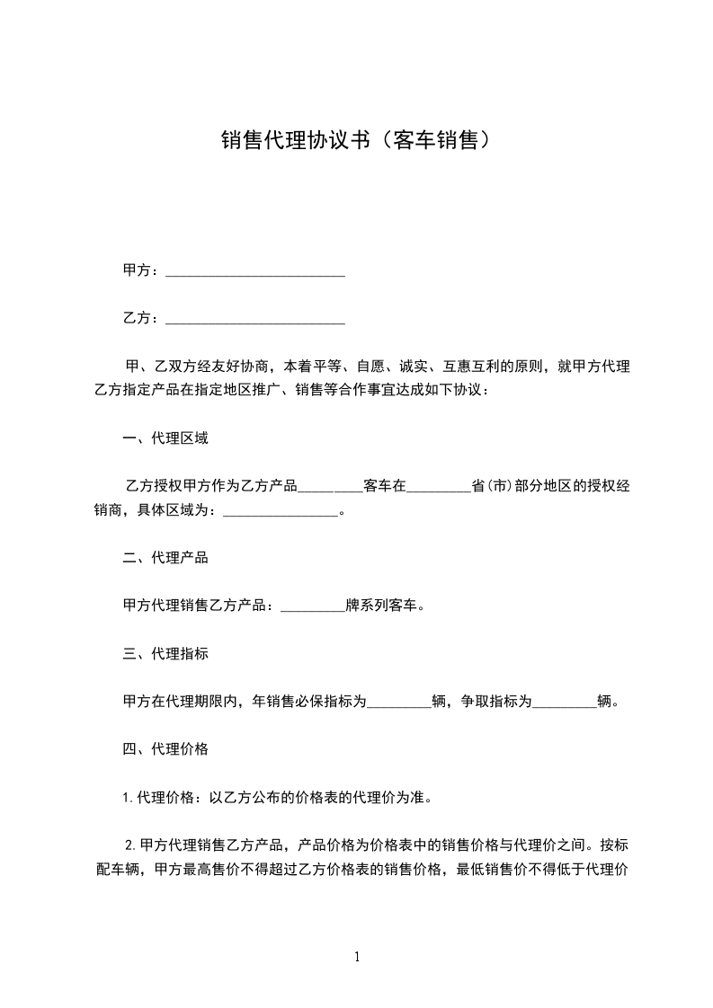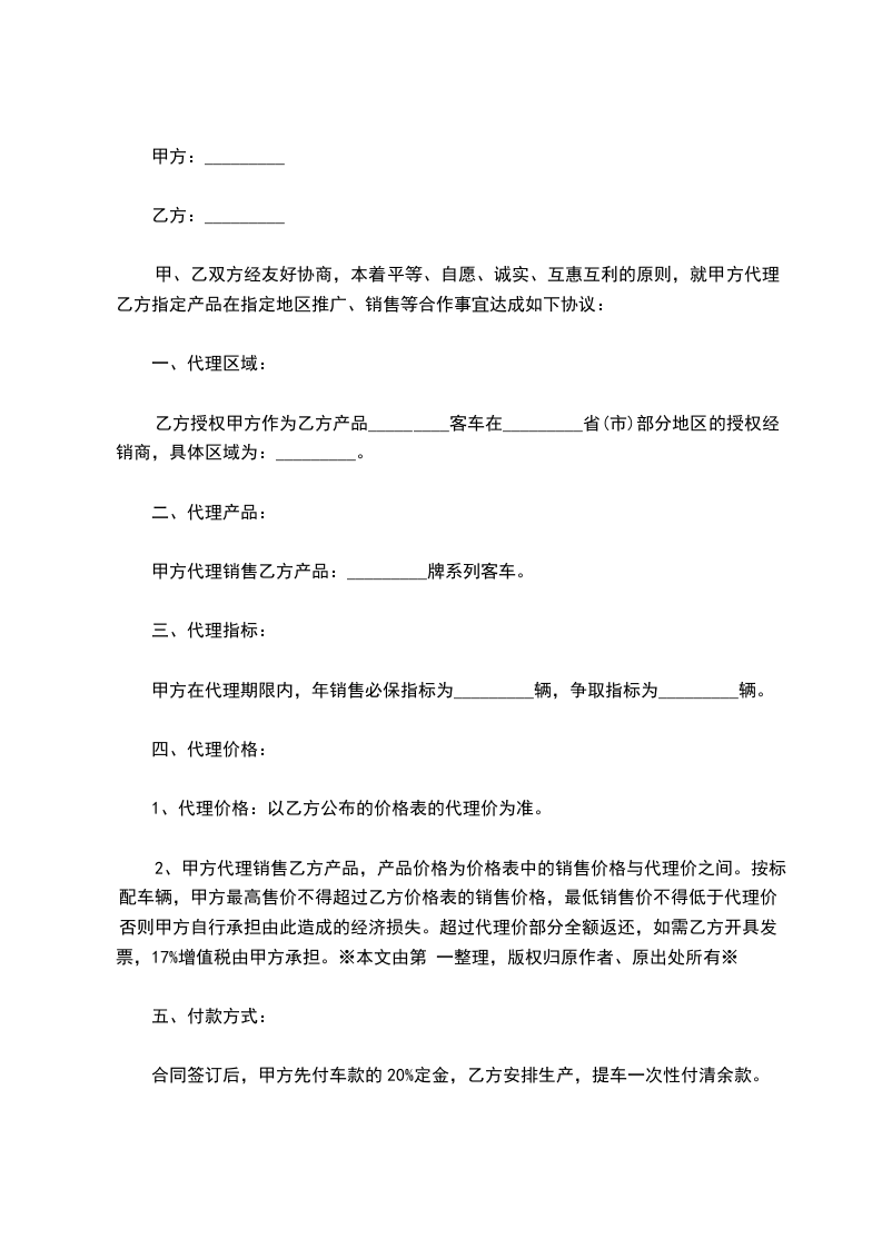 甲方代理销售乙方产品:_________牌系列客车。