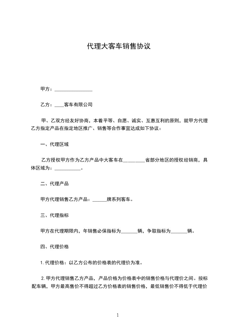 乙方授权甲方作为乙方产品_________客车在_________省(市)部分地区的授权经销商,具体区域为:_________。