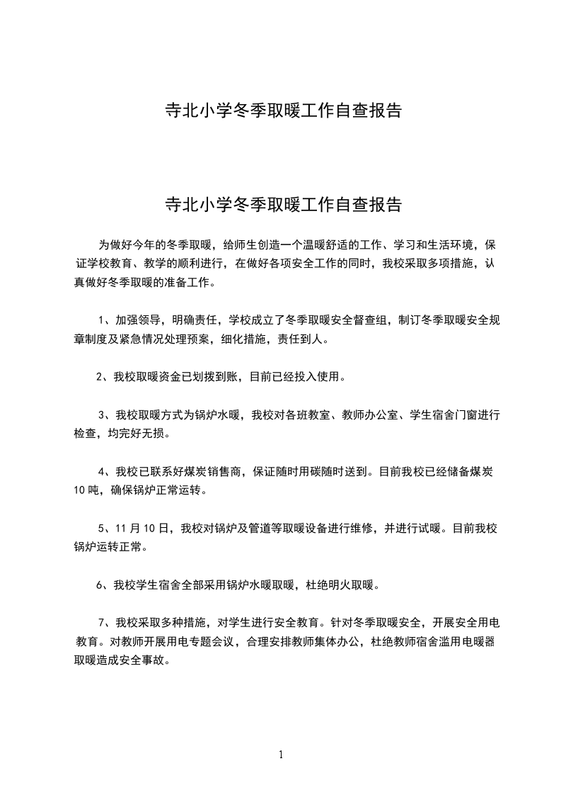 冬季取暖工作自查报告