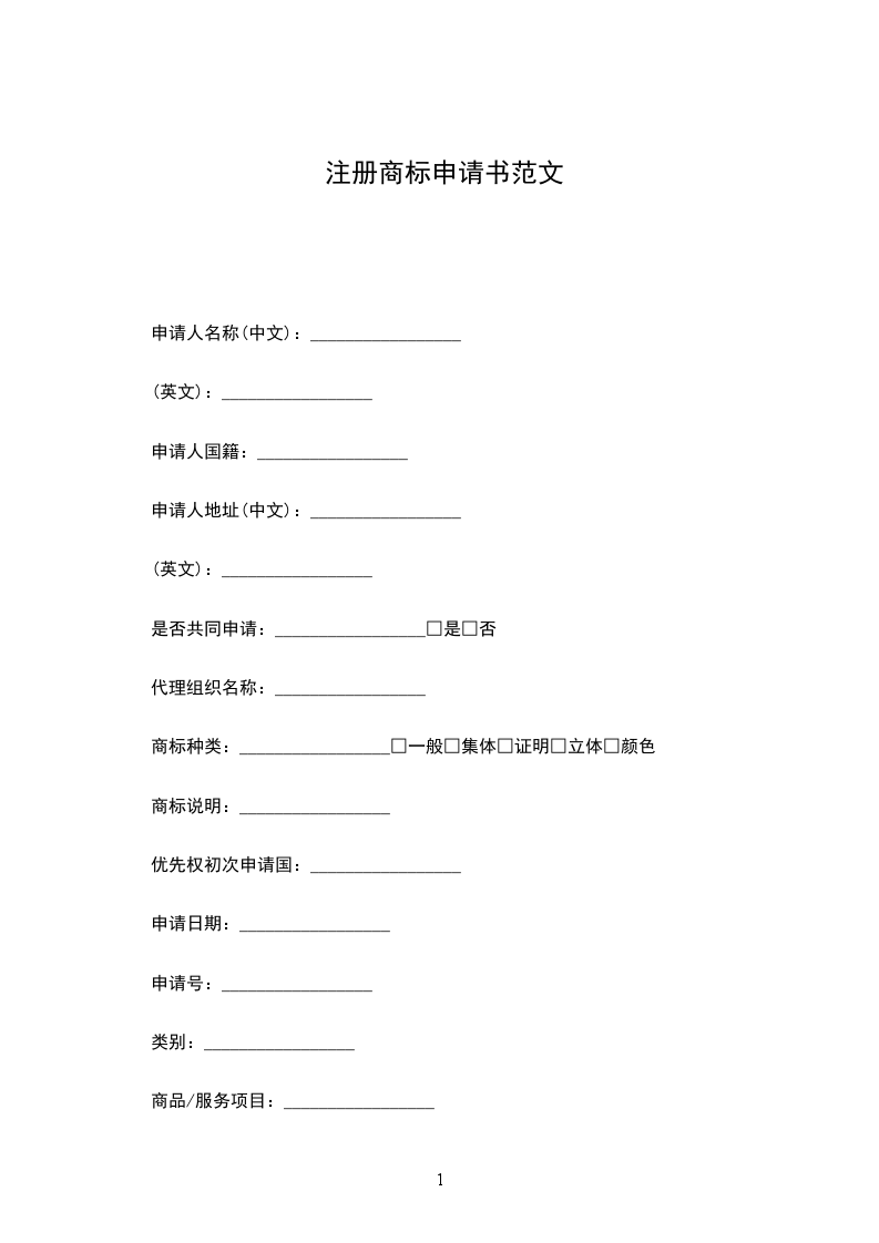现拟以_________商标,使用于商品分类表第_________类的下列商品,申请注册。