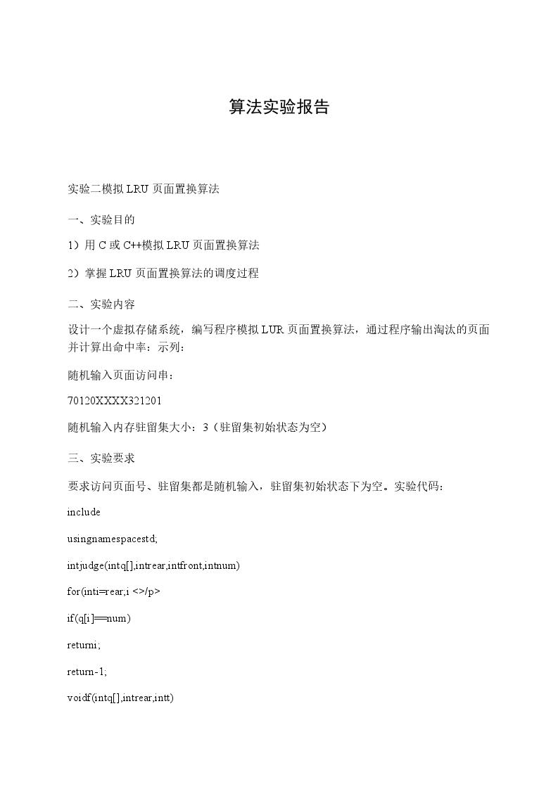 要求访问页面号、驻留集都是随机输入,驻留集初始状态下为空。实验代码: