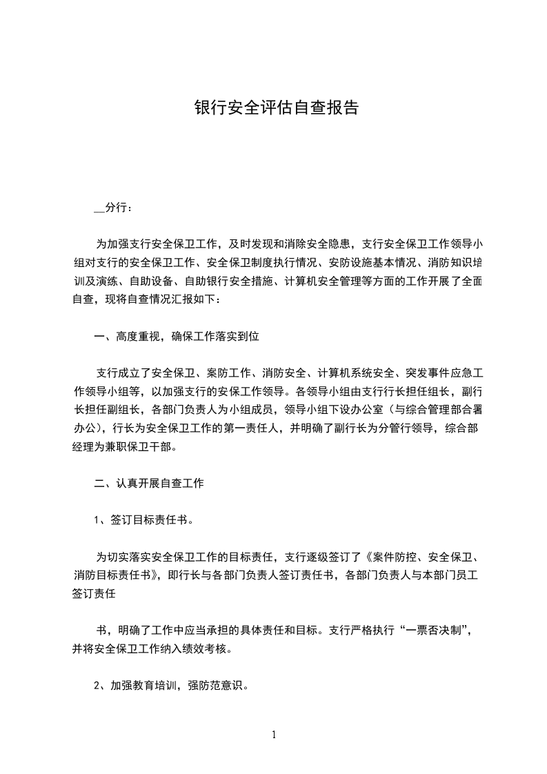为加强支行安全保卫工作,及时发现和消除安全隐患,支行安全保卫工作领导小组对支行的安全保卫工作、安全保卫制度执行情况、安防设施基本情况、消防知识培训及演练、自助设备、自助银行安全措施、计算机安全管理等方面的工作开展了全面自查,现将自查情况汇报如下: