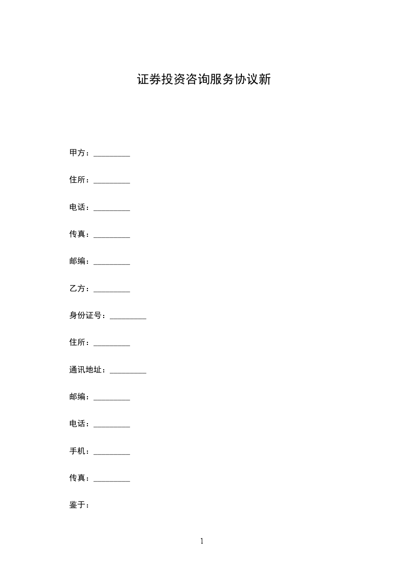 甲、乙双方本着诚实信用的原则,经友好协商就甲方有偿向乙方提供证券投资咨询服务达成如下协议: