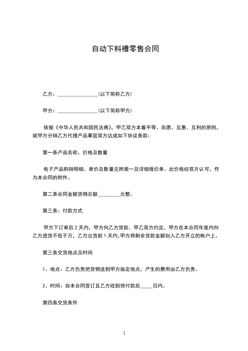 自动下料槽采购合同范本