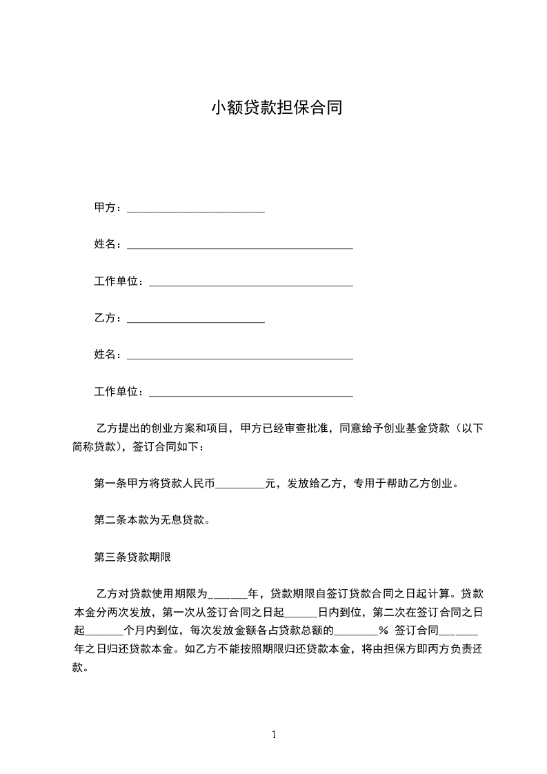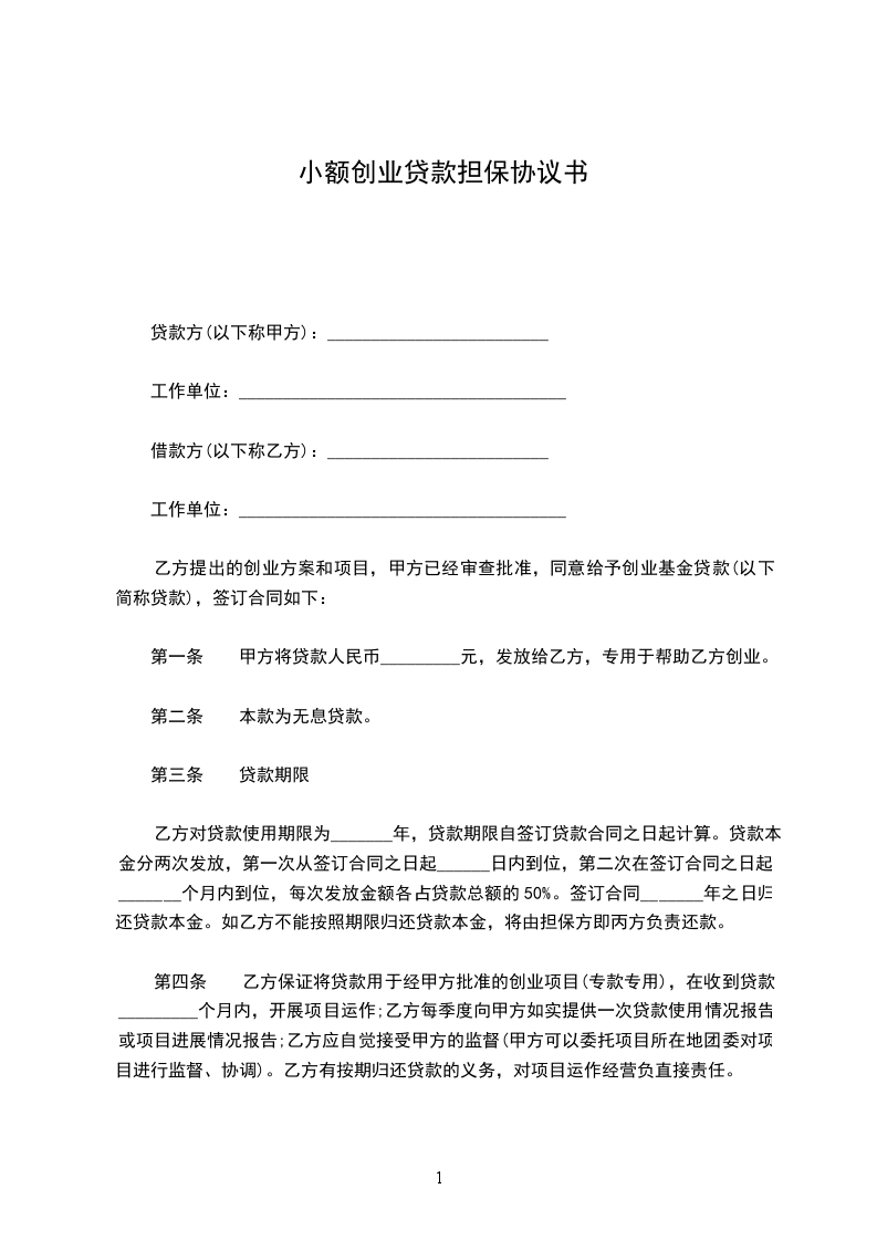 小额担保贷款申请