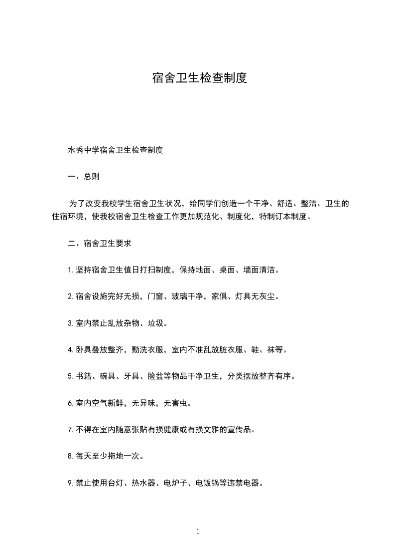 为了改变我校学生宿舍卫生状况,给同学们创造一个干净、舒适、整洁、卫生的住宿环境,使我校宿舍卫生检查工作更加规范化、制度化,特制订本制度。