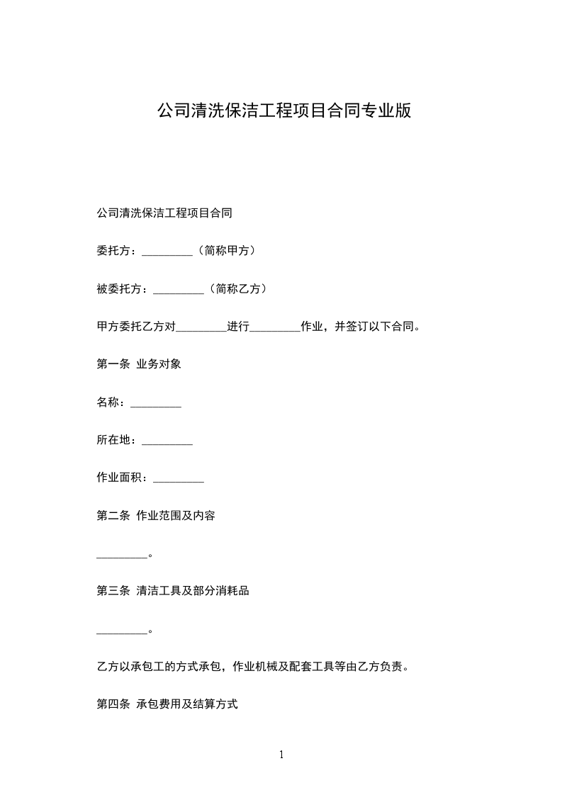 公司清洗保洁工程项目合同