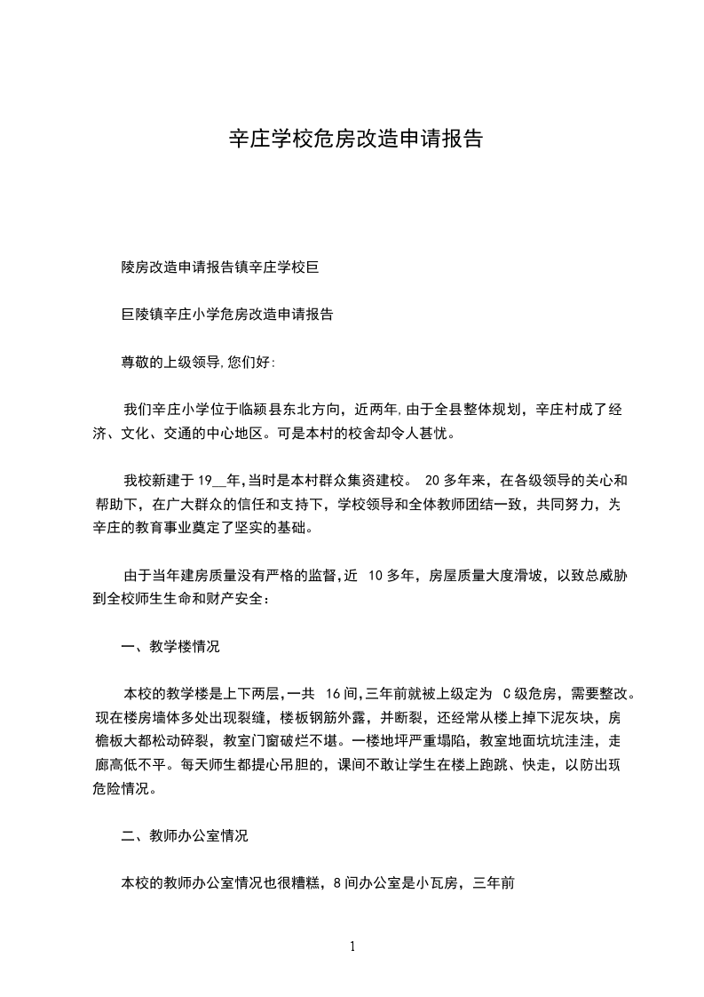 危险的校舍,已经严重威胁到我校全体师生的生命和财产安全。每次开家长会,都有群众提起校舍问题,说:“孩子在这样的校舍里上学不放心,该校成了被共产党遗忘的角落,多年来上级领导对辛庄的校建无动于衷。”有的干脆把孩子转的较远的地方上学。我们也多次给群众解释,说上级领导已经察看过这种情况,会及时维修,重建。三年过去了,这里情况越来越糟糕,已严重影响了教学秩序的正常进行。现在,我校教师每天在需要重建的危房中办公,孩子们在需要整改的屋子里学习,一遇到恶劣的天气,全校师生都会提心吊胆,惶惶不安,唯恐有什么不测。