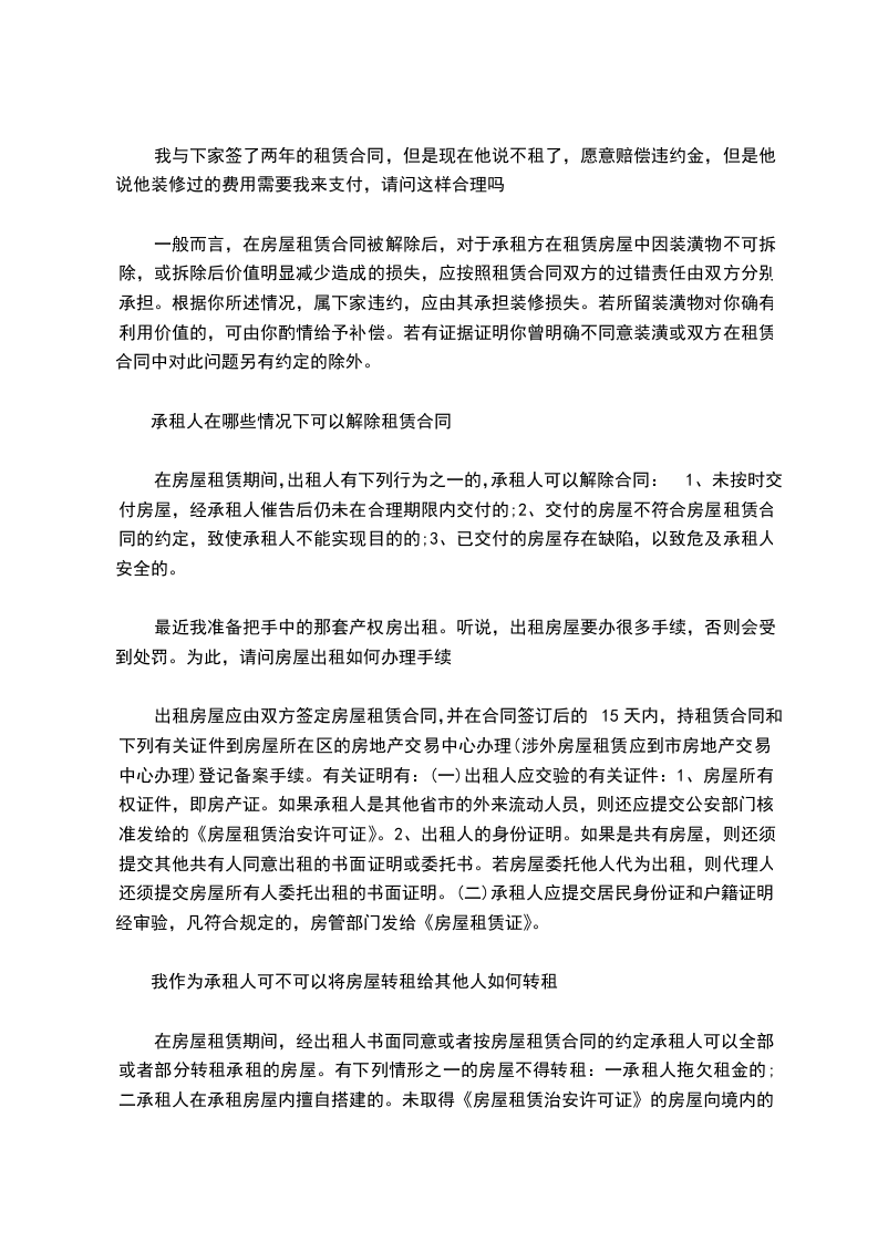 我与下家签了两年的租赁合同,但是现在他说不租了,愿意赔偿违约金,但是他说他装修过的费用需要我来支付,请问这样合理吗