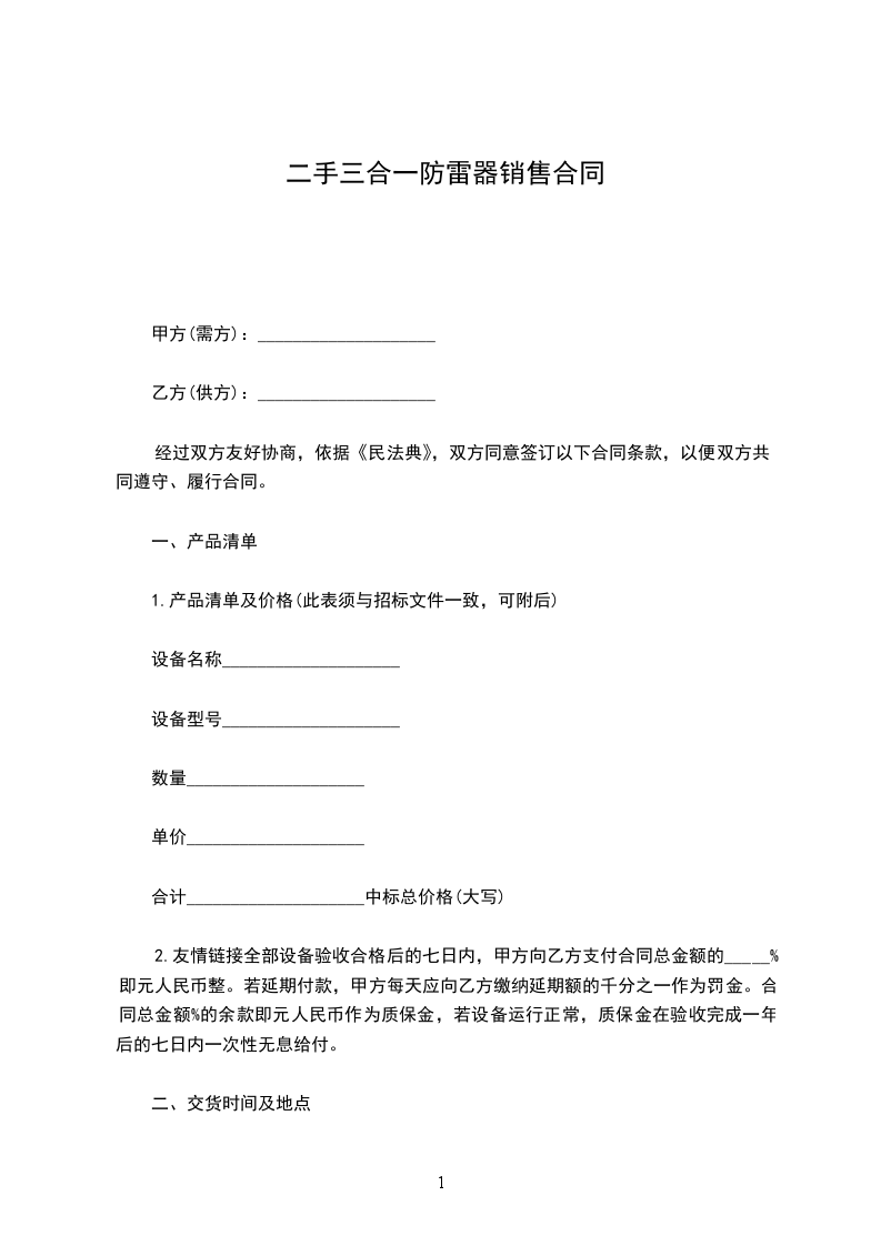 1.交货时间:(投标文件承诺时间)。若延期交货,乙方每天应向甲方缴纳延期额的千分之一作为罚金。因不可抗拒力所导致的交货,服务及付款延迟等按照《民法典》有关条文处理。