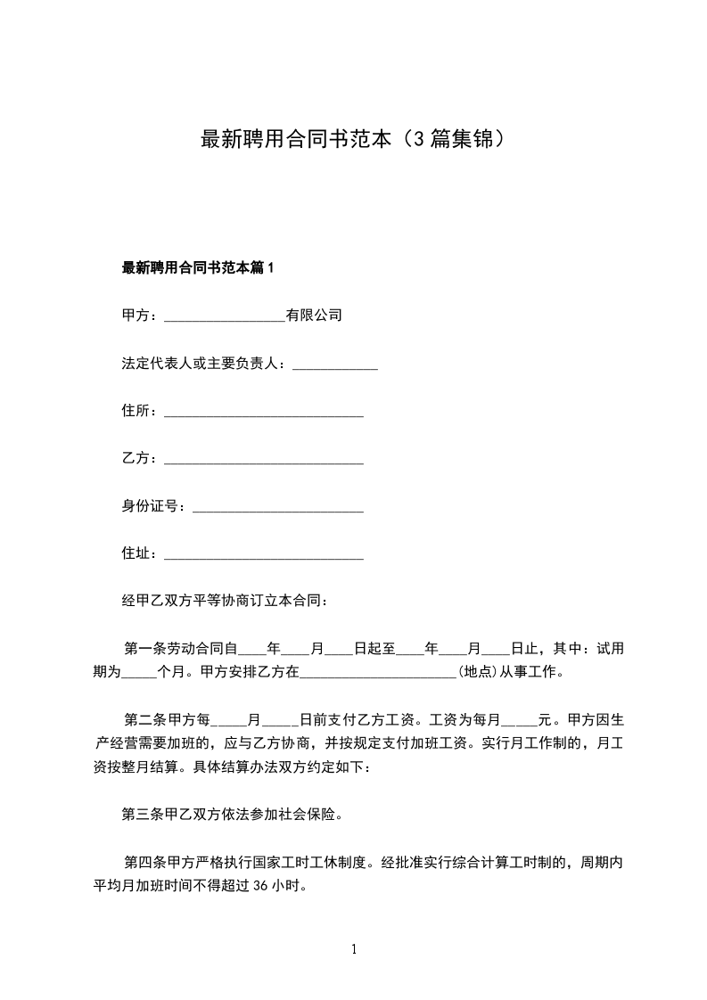 最新聘用合同书范本篇3