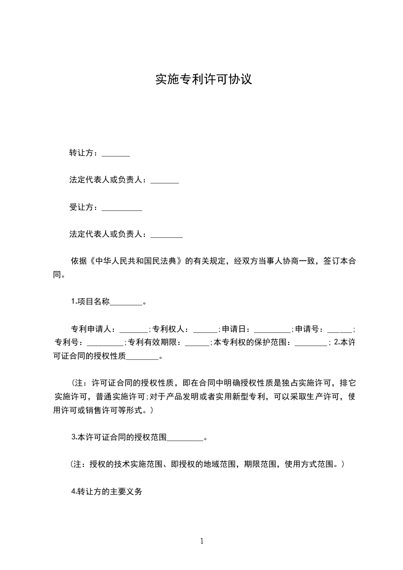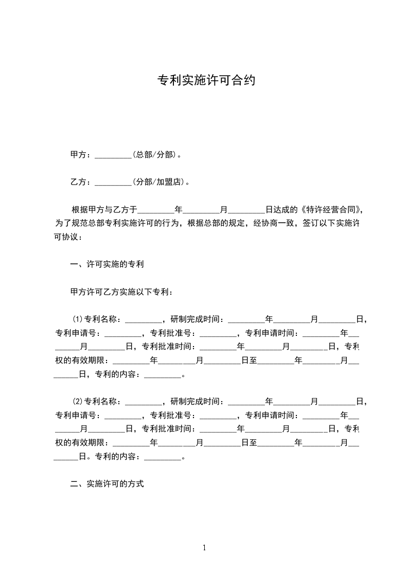 专利实施合同
