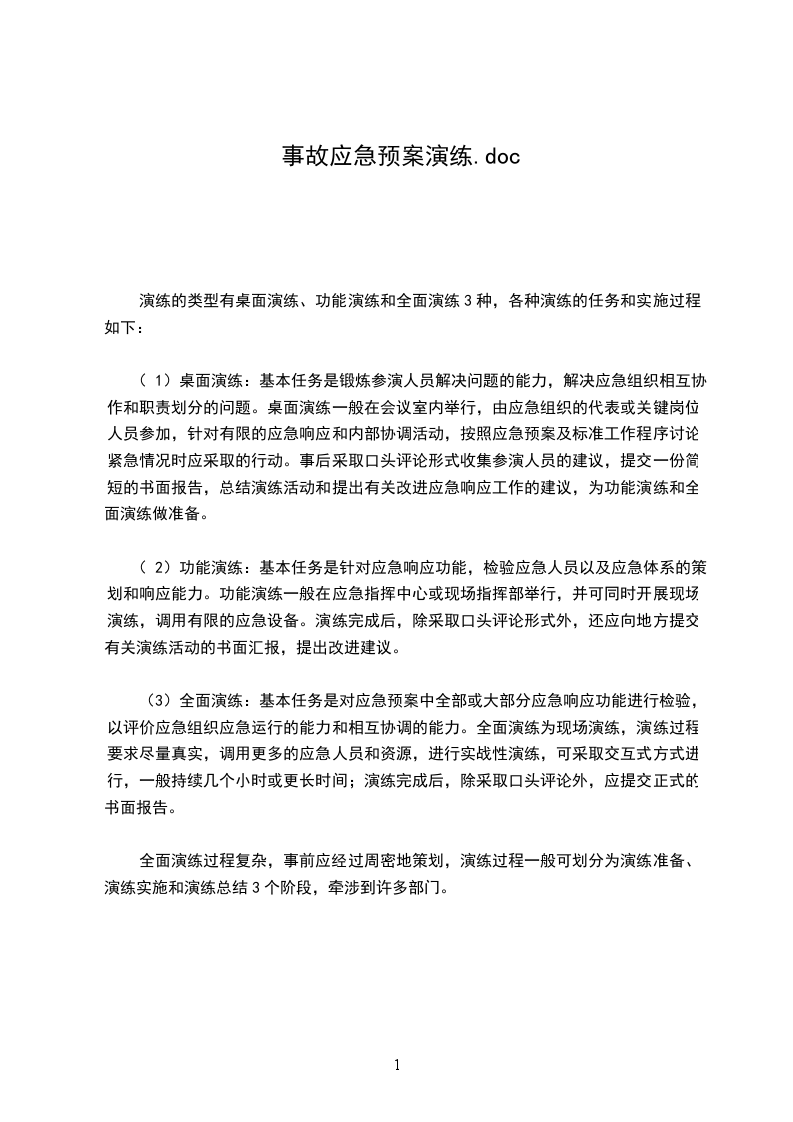 (2)现场演习即事故设想实地演习。根据其任务要求和规模可分为单项训练、部分演习、综合演习三种。