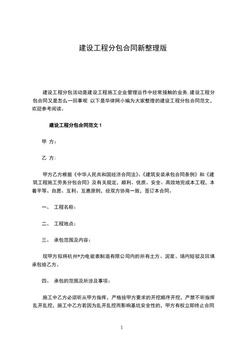建设工程分包合同范文1