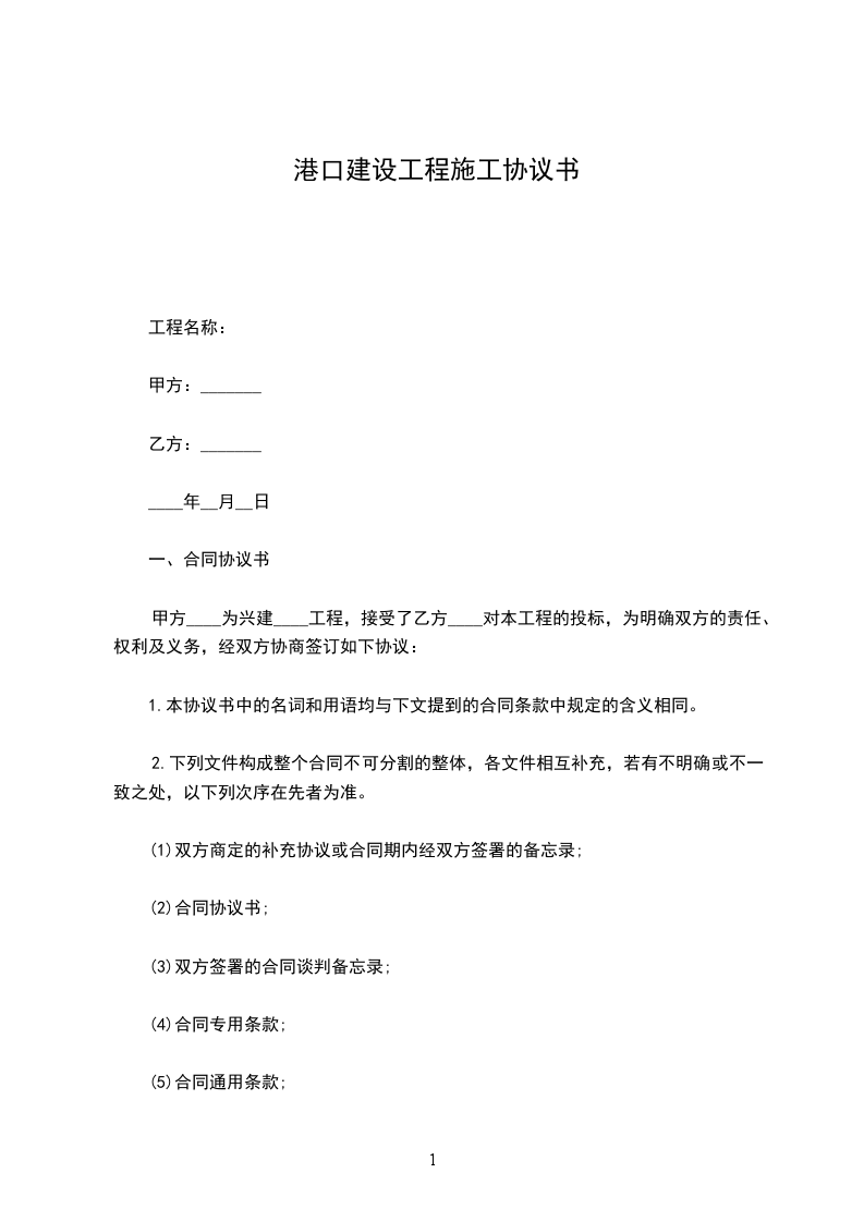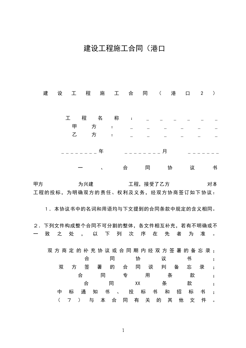 1.合同范围:列出本合同范围内的工程地点、内容、规模、建筑物的尺度,建筑物的结构型式,并明确合同范围内水工、堆场、水电、土建、机械、疏浚等不同专业的施工内容。