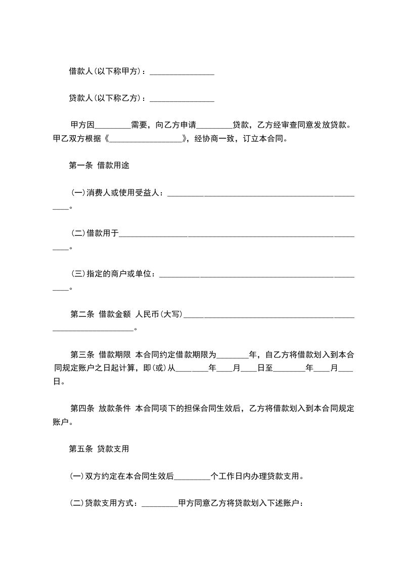 甲方因_________需要,向乙方申请_________贷款,乙方经审查同意发放贷款。甲乙双方根据《__________________》,经协商一致,订立本合同。
