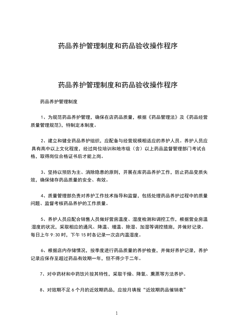 1、为规范药品养护管理,确保在店药品质量,根据《药品管理法》及《药品经营质量管理规范》,特制定本制度。
