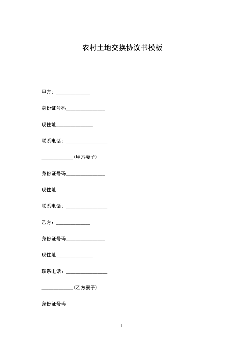 经甲、乙双方于_______年_______月_______日(农历_______年_______月_______日)下午,在和谐、平等、公平的气氛下,就5—6号土地交换事宜进行协商,订立本合同。