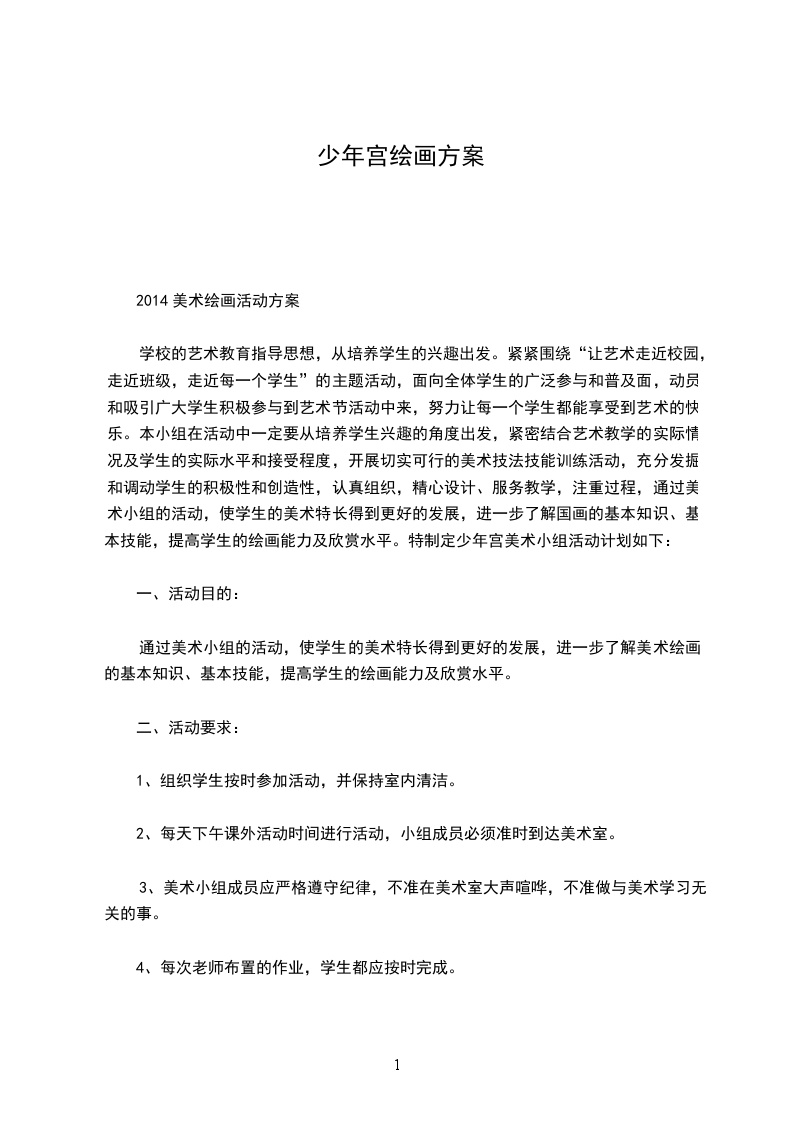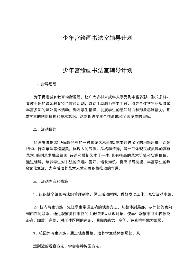 少年宫绘画书法室辅导计划