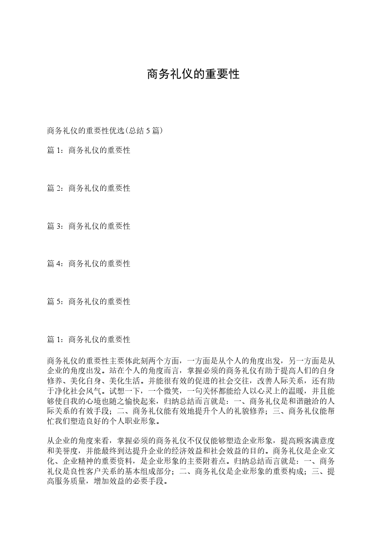 经过这学期对为期两周的商务礼仪的学习,我们对商务礼仪的内容和相关知识都有了一定的了解。商务礼仪,是指人们在商务交往中适用的礼仪规范,是在商务交往中,以一定的、约定俗成的程序、方式来表示尊重对方的外在表现,又是人际交往中适用的一种艺术或交际方式,是人际交往中约定俗成的示人以尊重、友好的习惯做法。