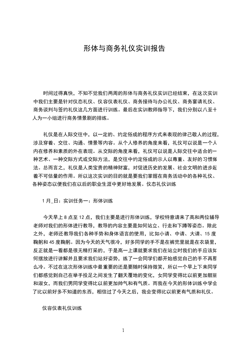 商务礼仪综合实训报告