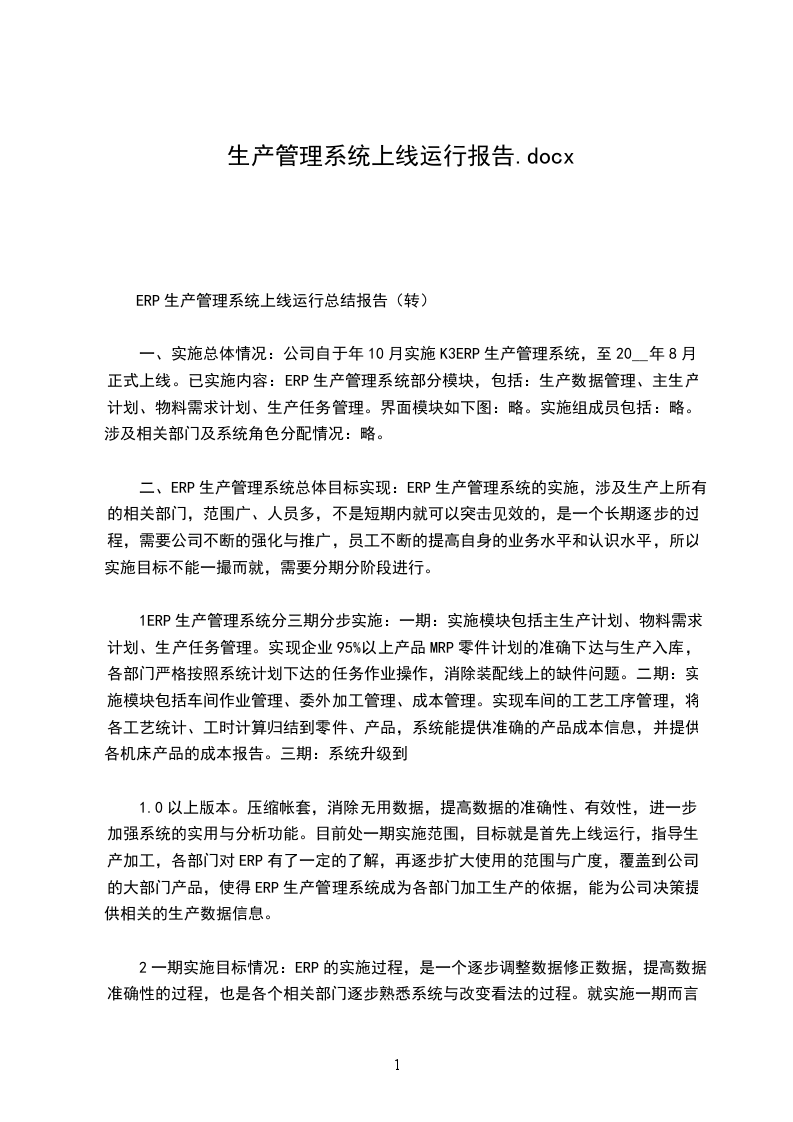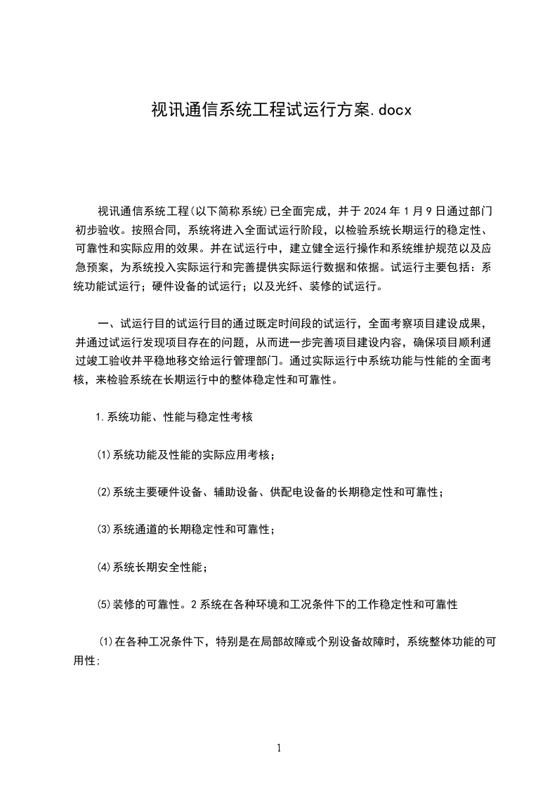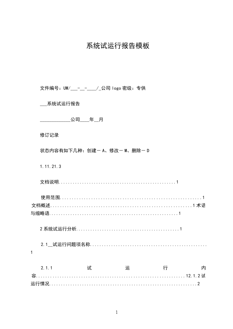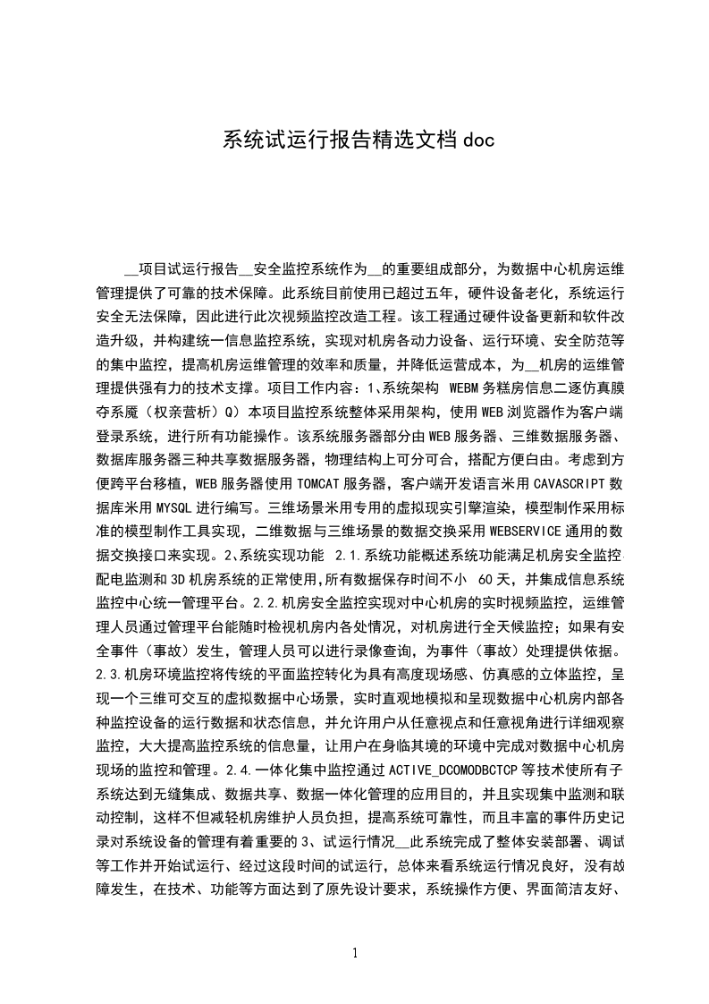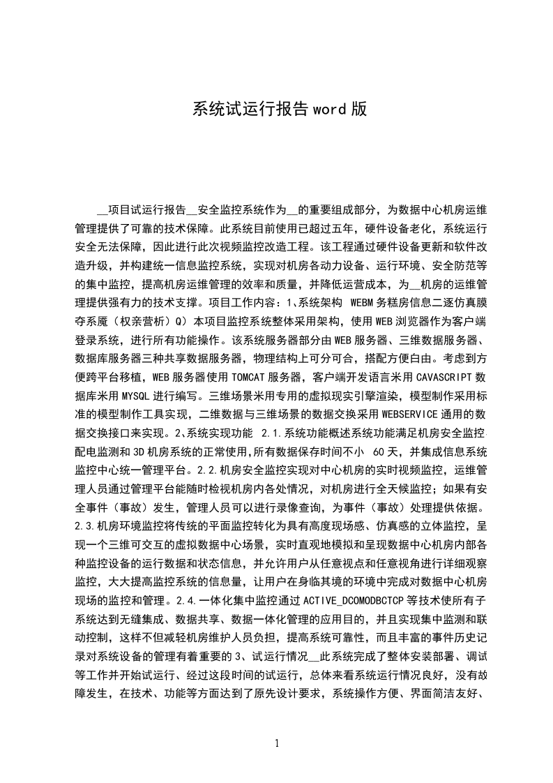 2.1.1试运行内容...............................................................12.1.2试运行情况...............................................................2