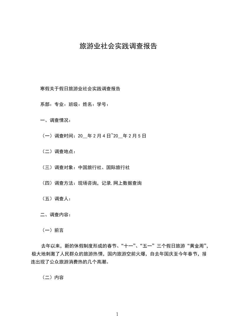 寒假关于假日旅游业社会实践调查报告