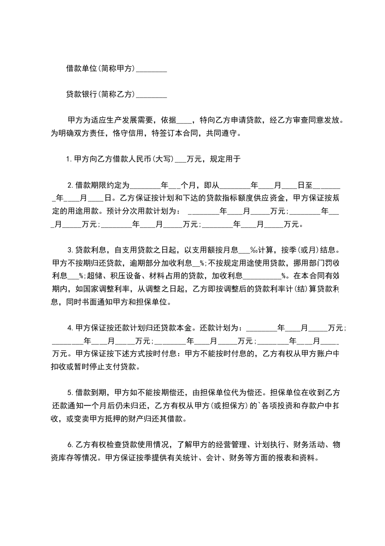 甲、乙双方经充分协商,订定以下借款合同: