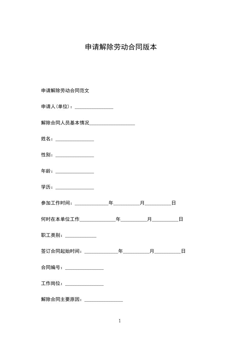 在此,我郑重向采油厂提出自愿解除劳动合同申请,望采油厂领导给予批准。