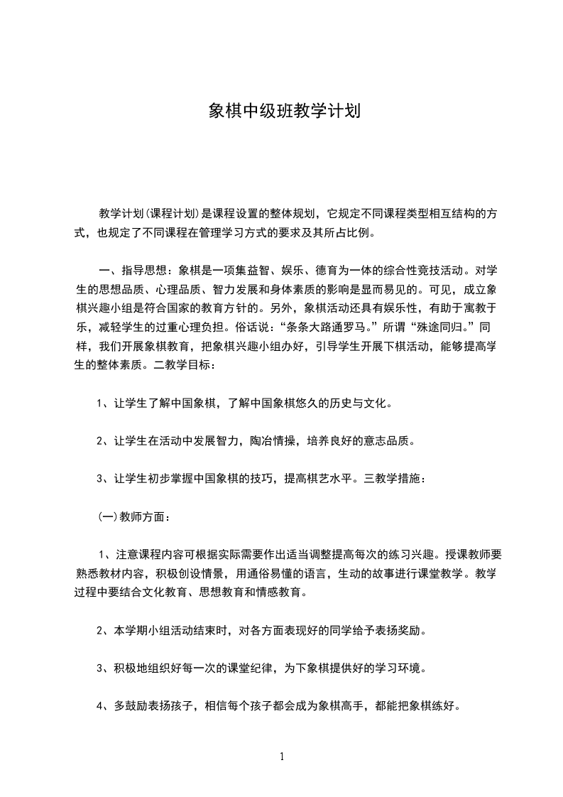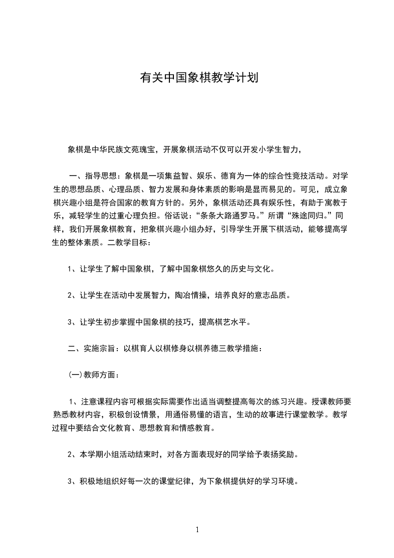 1、象棋教学纳入常规的管理