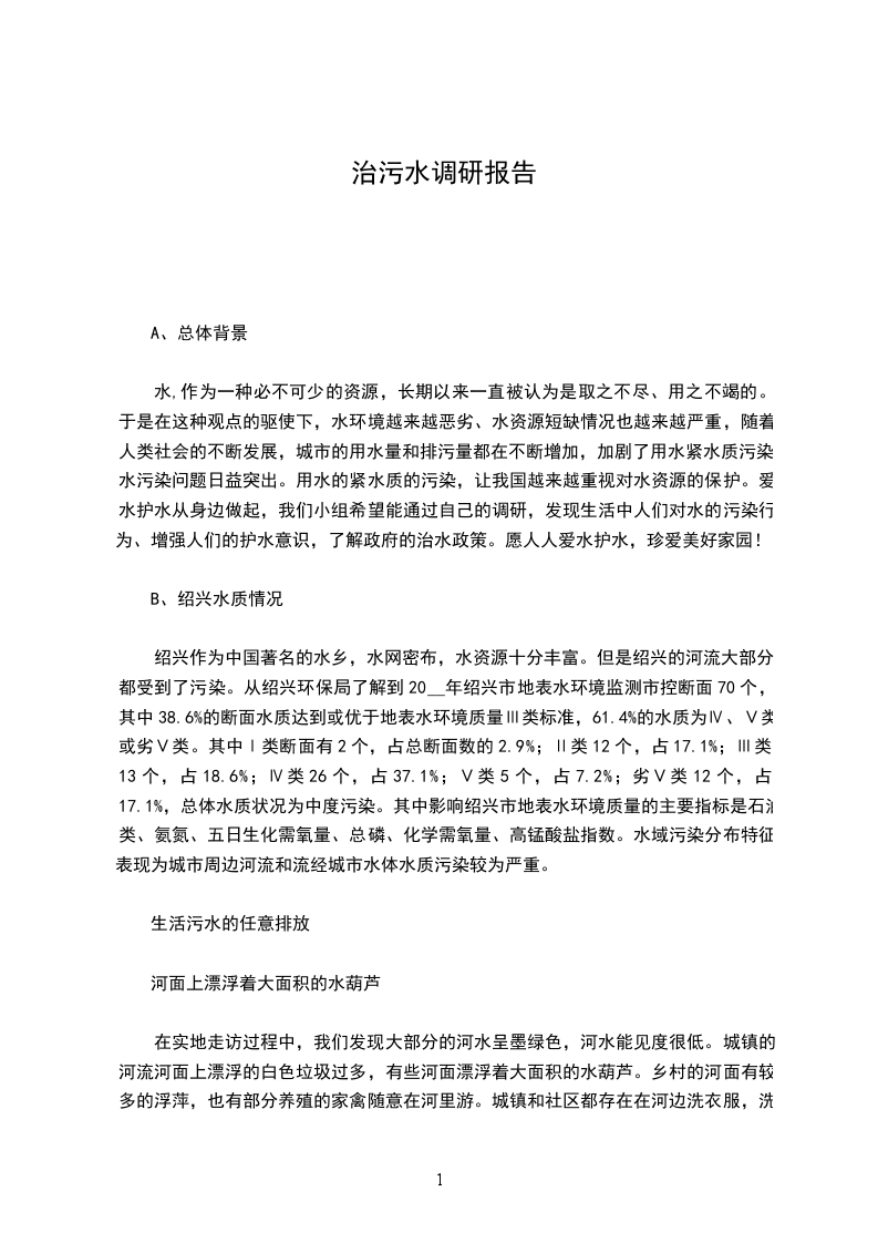 -----防治污水调查小组为了解水污染的现状,更好地解决水污染问题。特邀请您参加此次问卷调查。本问卷不记名,不涉及任何个人隐私,我们对每个参与者填写的情况予以保密。