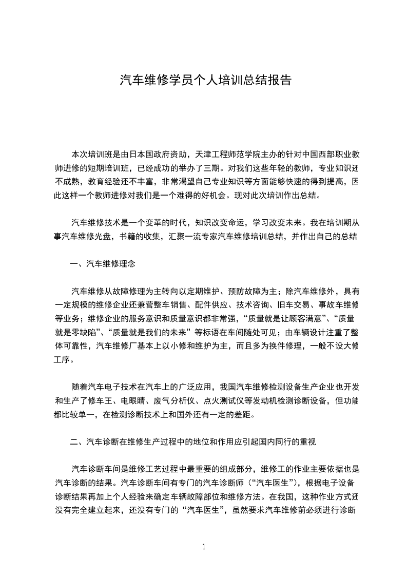 本次培训班是由日本国政府资助,天津工程师范学院主办的针对于中国西XX职业教师进修的短期培训班,已经成功的举办了三期。对于我们这些年轻的教师,专业知识还不成熟,教育经验还不丰富,非常渴望自己专业知识等方面能够快速的得到提高,因此这样一个教师进修对于我们是一个难得的好机会。现对此次培训作出总结。