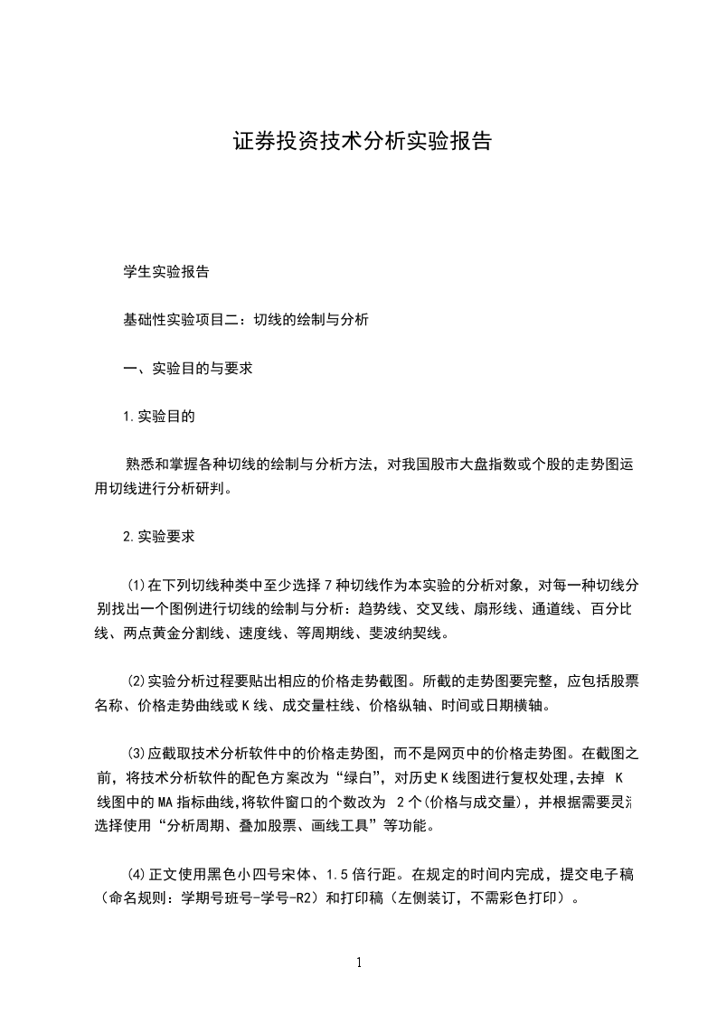 熟悉和掌握各种切线的绘制与分析方法,对我国股市大盘指数或个股的走势图运用切线进行分析研判。