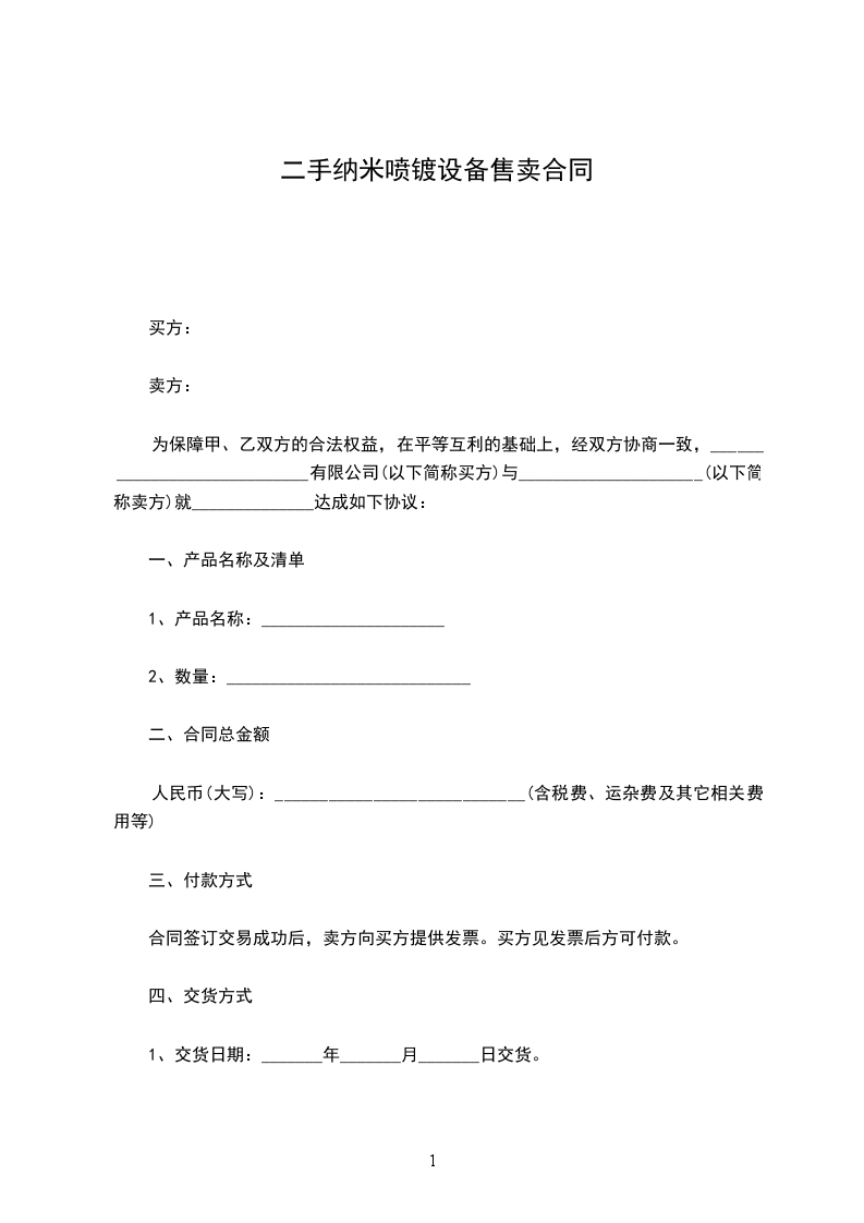 1、交货日期:_______年_______月_______日交货。