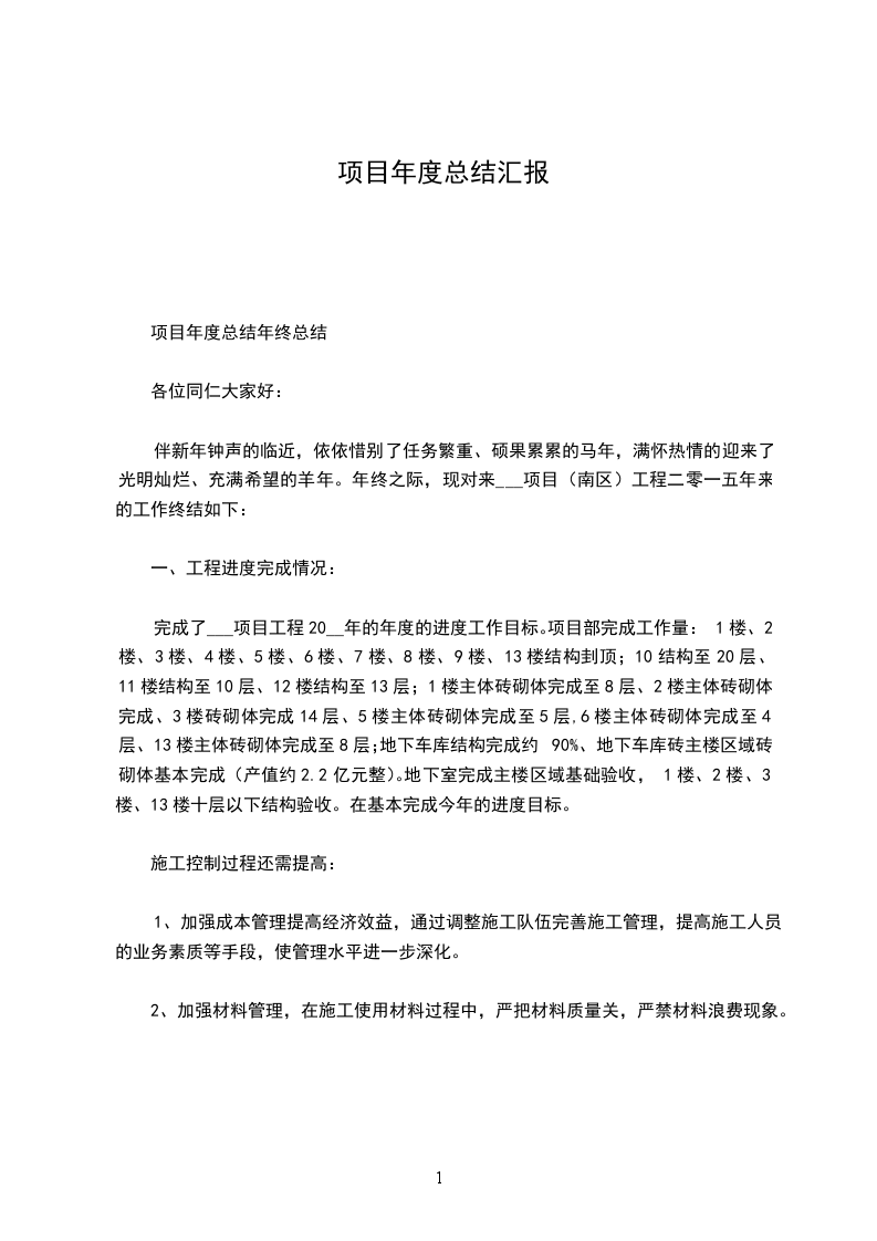 伴新年钟声的临近,依依惜别了任务繁重、硕果累累的马年,满怀热情的迎来了光明灿烂、充满希望的羊年。年终之际,现对来___项目(南区)工程二零一五年来的工作终结如下: